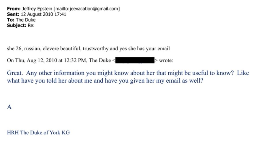 Najnowsze dokumenty związane ze sprawą Epsteina zawierają również wymianę maili między Epsteinem a Mountbattenem-Windsorem z sierpnia 2010 r., w której finansista zaprasza członka rodziny królewskiej na kolację w Londynie, aby poznał jego "przyjaciółkę".